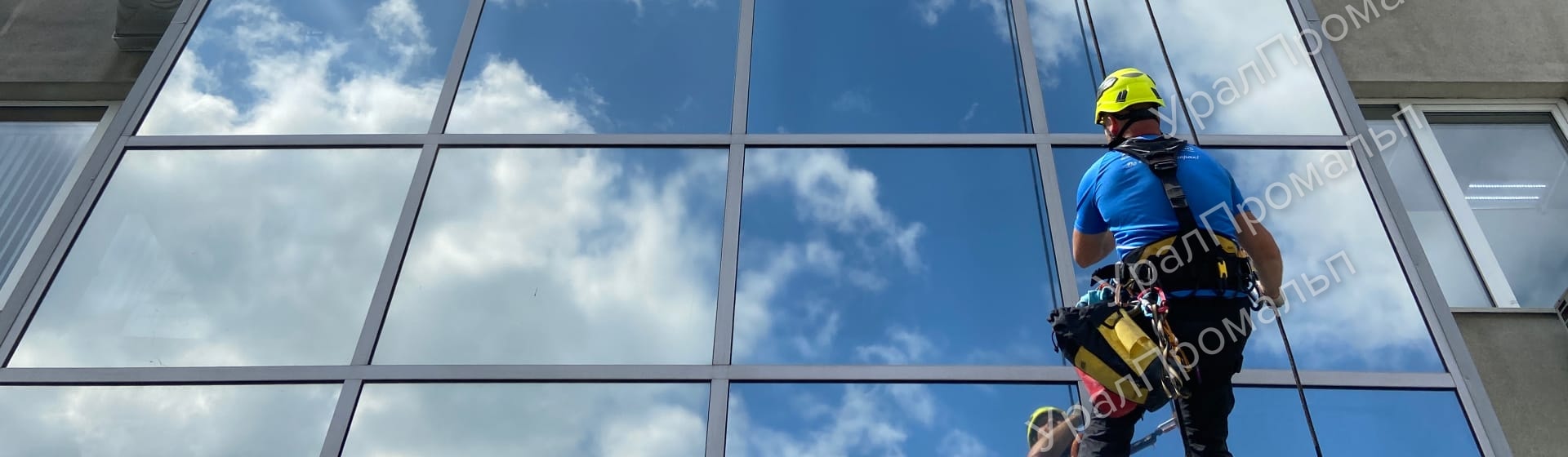 Мойка фасадов, витражей и остекления промышленными альпинистами. Работаем по Екатеринбургу и области.